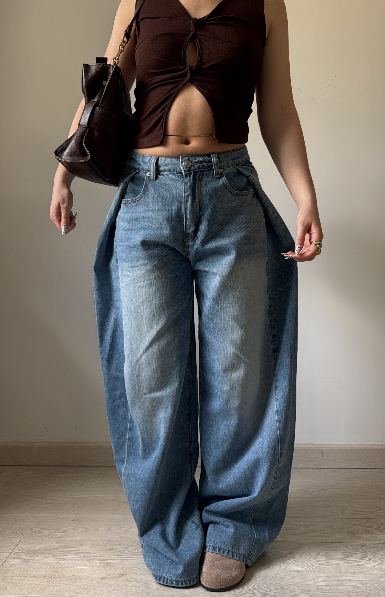 Cette jupe-short camel allie style et liberté de mouvements, à porter avec une veste et des bottes en simili ou plus léger avec un top et des sandales.