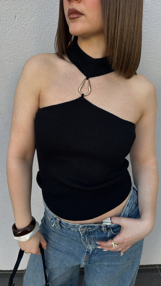Top côtelé - Noir